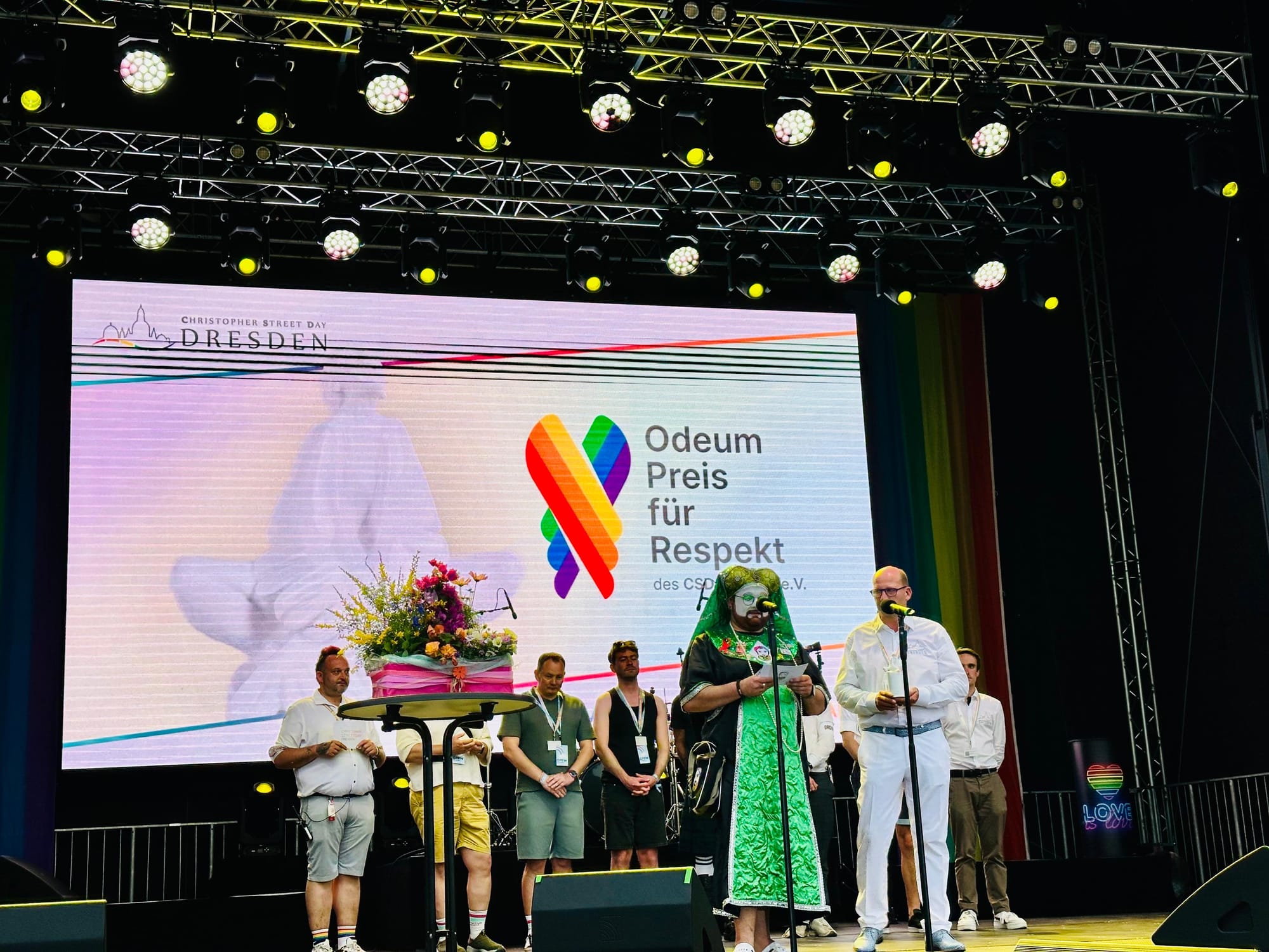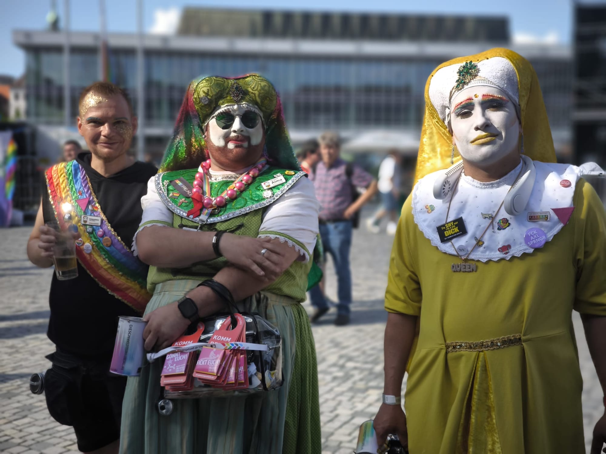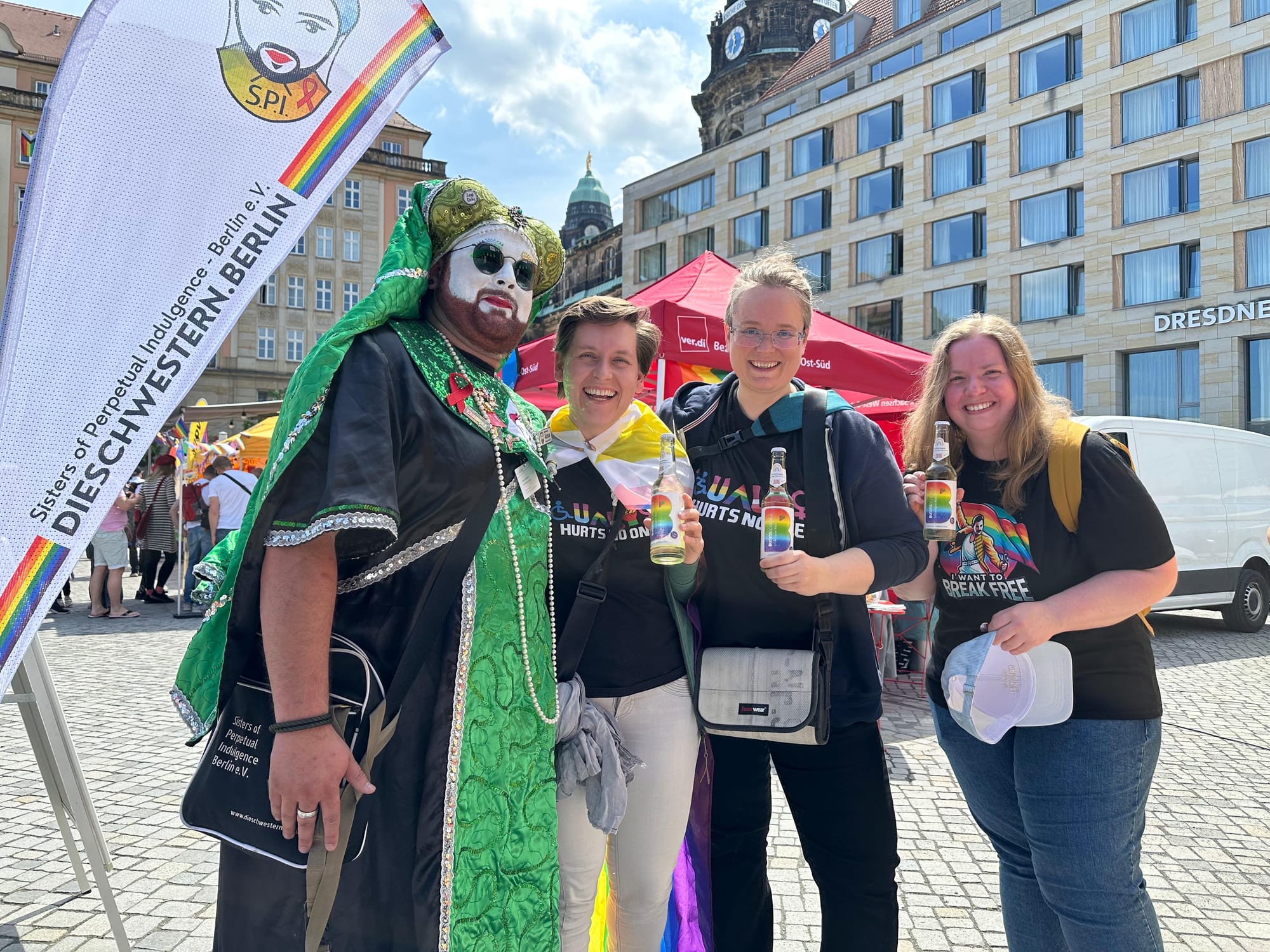 CSD Dresden CSD Dresden Straßenfest 2025 Bjørn Ramos 24 Feb. 2026 • 1 min read Schwester Alma, Schwester Ilse, Gardist Björn, Schwester Lily, Helfer Manu, Schwester Dora, Schwester Maja - auf dem CSD Dresden Straßenfest 2025 [v.l.n.r.] [v.h.n.v.]